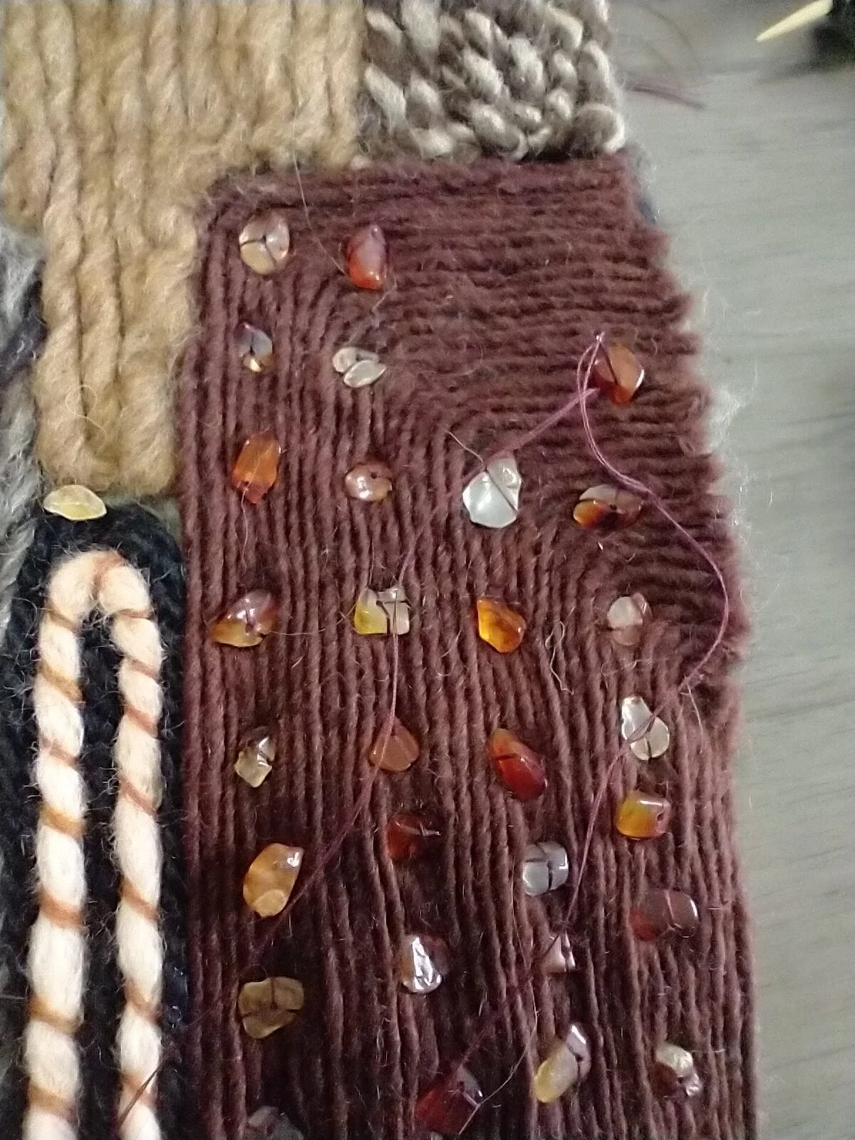 These beads were from a thrifted necklace I took apart months ago. As I was sewing them down the name of this piece revealed itself: Begin Again.